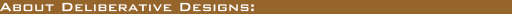 Deliberative Designs is a multi-disciplinary firm, that provides specialty knowledge acquired over decades of helping people sove their technology and architectural problems in various areas, such as: