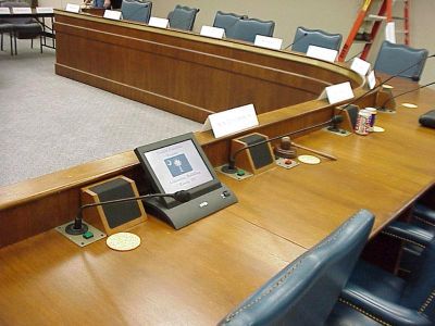 Designed new cost-effective, high-reliability microphone cord reelers and had them manufactured and installed in each legislator's (member's) desk for 124 desks. This is an example of "if we can't find a commercial solution, we will make it happen to fit your needs".